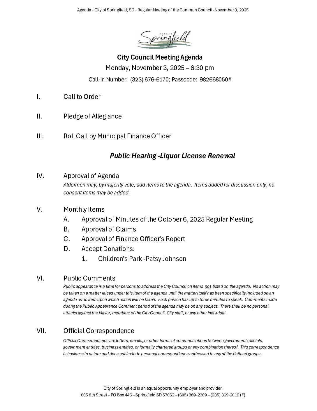 The first page of the meeting agenda is displayed. To access the full agenda, please use the link provided. Agenda_3November2025